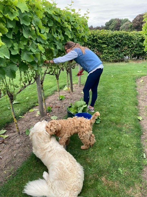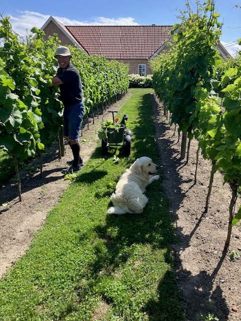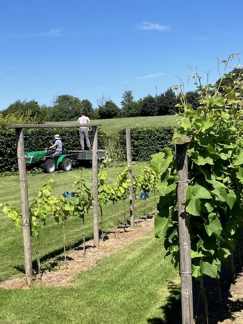 Då fortsätter gallringen av vinrankorna och vi plockar tjuvskott, sidoskott, knoppar, rensar ogräs och toppklipper.