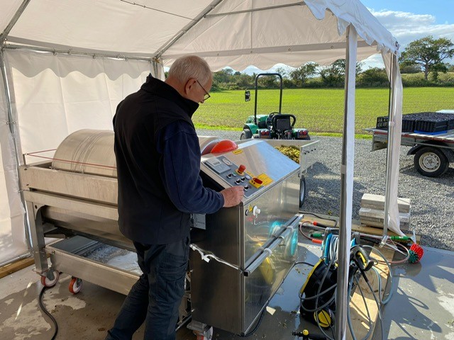 Under september månad är det dags för skörd, årets höjdpunkt. Innan skörd följer vi noga sockertillväxten i druvorna genom att mäta mustvikten/Oechsletalet/Oe med hjälp av en refraktormeter. Vi mäter Oe med jämna mellanrum för att plocka druvorna när Oe-värdet uppnått önskad nivå.