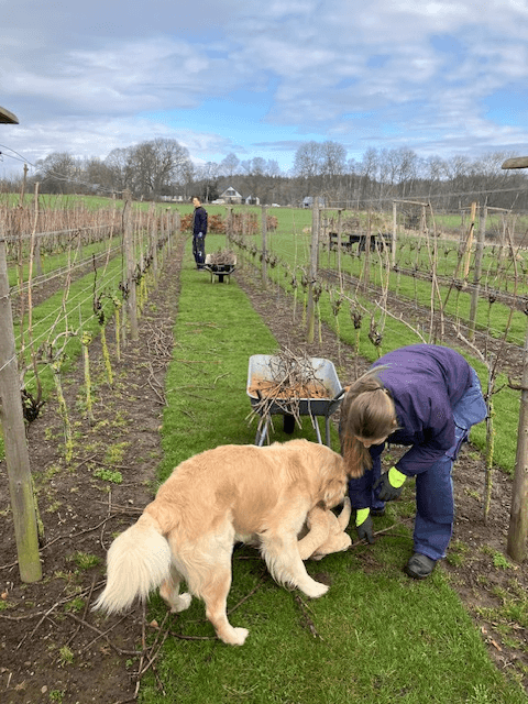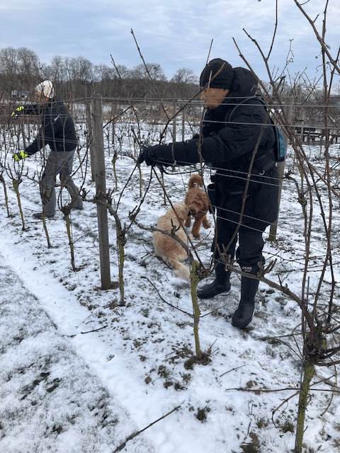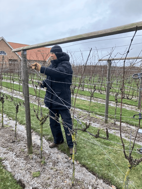 I januari börjar den årliga beskärningen av vinstockarna. För hand med sekatör ska vinrankorna klippas och bindas upp.