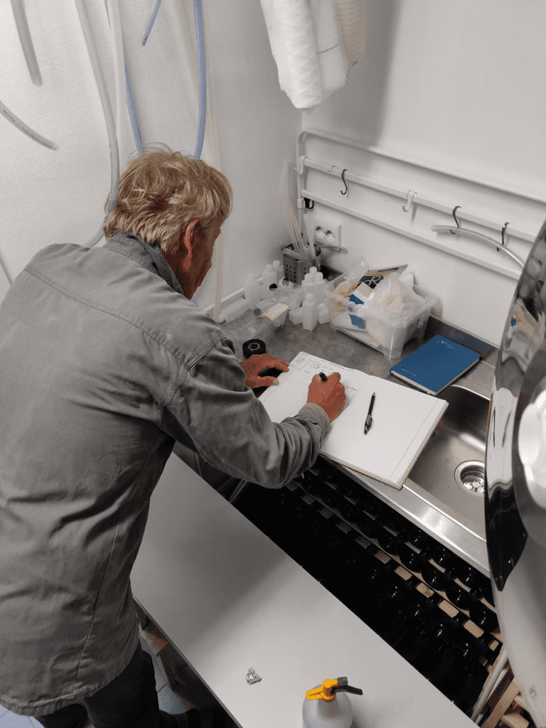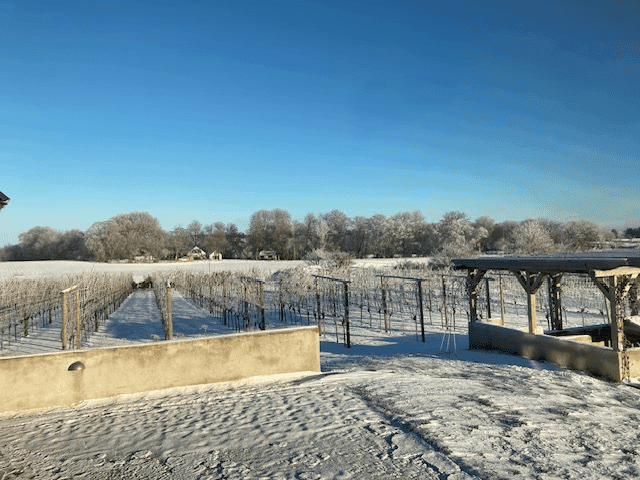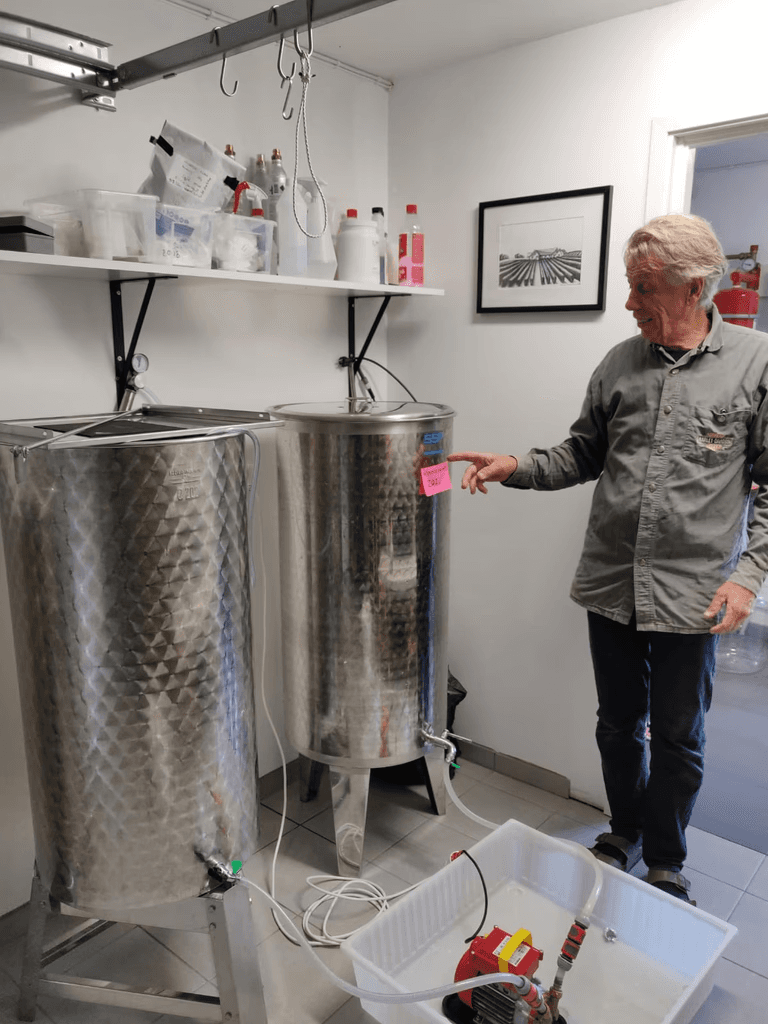 I vineriet passar vi på att köldstabilisera vinet som ligger i tankarna från senaste skörden. Vi sänker temperaturen ner mot nollstrecket för att fälla ut vinsten så att inte det sker senare i buteljen.