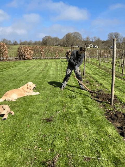 Vårvintern är en tid för reparation och underhåll av stödstolpar och odlingstrådar. Nyplantering lämpar sig också väl under den här tiden.