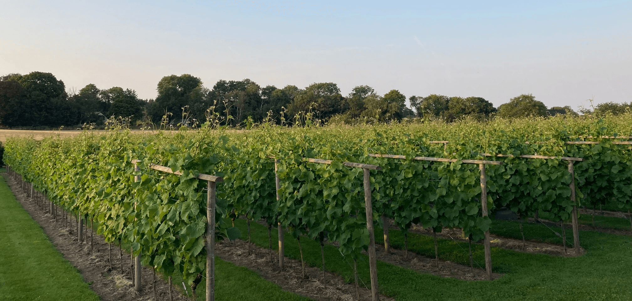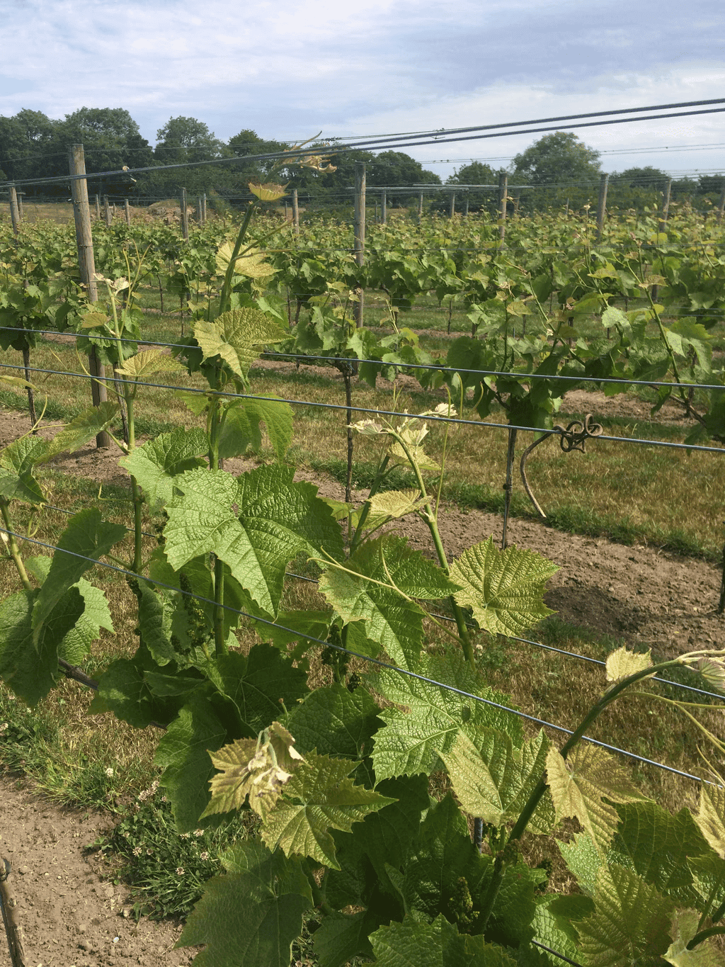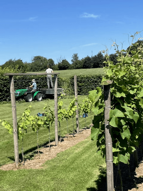 Under sommaren tar växandet fart i vingården. Då fortsätter gallringen av vinrankorna och vi plockar tjuvskott, sidoskott, knoppar, rensar ogräs och toppklipper.